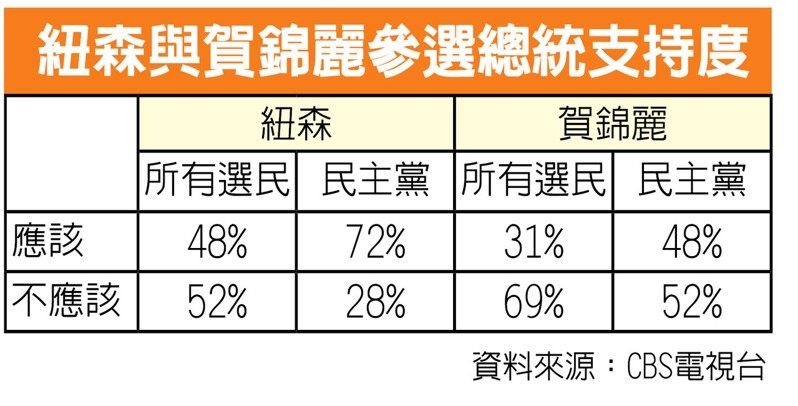 大多數獨立人士認為紐森或賀錦麗都不應該參選;但與賀錦麗相較之下,他們更有可能認為紐森應該參選。