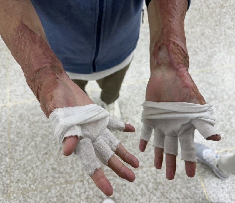 他自去年10月27日入院治療,一直到隔年3月初才出院,期間接受皮膚移植手術,出院後仍持續回診與復健。趙先生表示,燒傷後的身體狀況對生活造成極大影響,不僅疤痕經常隱隱作痛,行動也不如以往靈活,更無法提重物,連工作都受到嚴重影響。