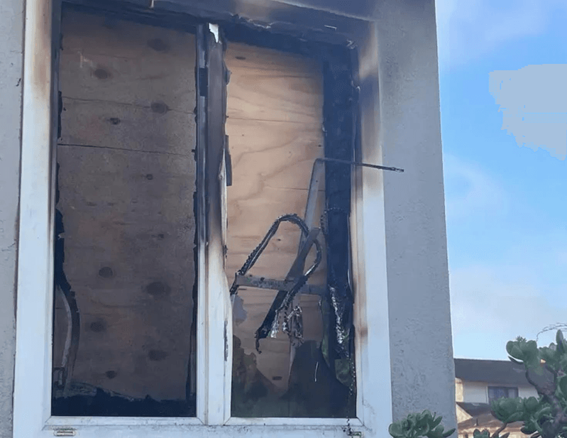 當時這棟屋有幾扇門、窗完全被燒毀。(本報檔案照)