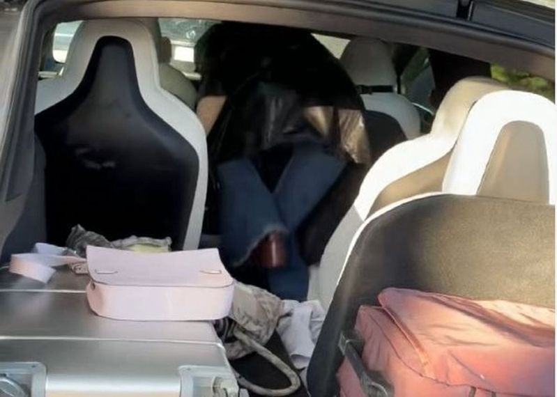 楊天真打不開特斯拉,只好爬後車廂進入。(取材自都市快報)