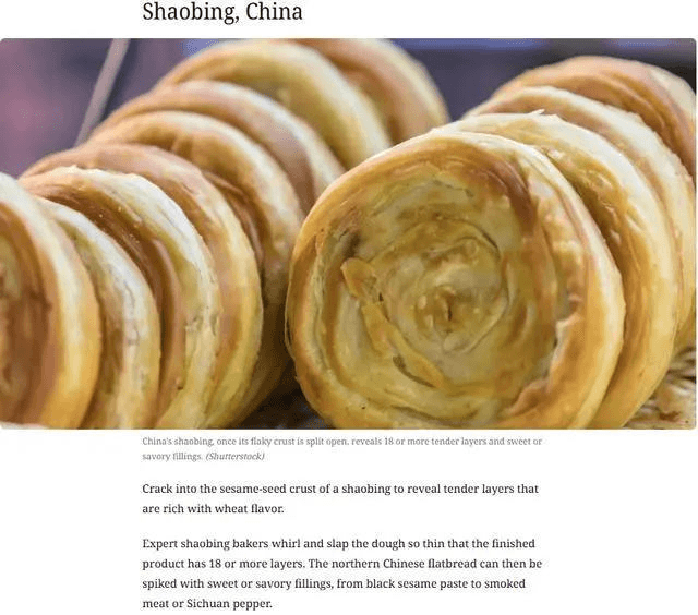 美媒描述它:「燒餅以其金黃酥脆的外皮、柔軟筋道的內裡,以濃郁香氣征服了全球美食評論家味蕾。」報導還強調,燒餅不僅是中國北方早餐的「靈魂角色」,更承載著千年的飲食文化密碼,是「中國人日常餐桌上的老朋友」。