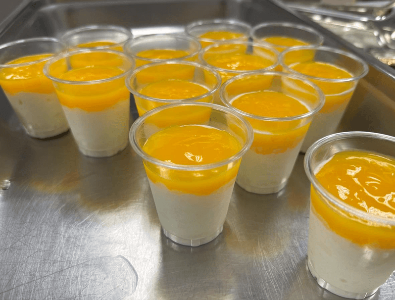 義工製作的芒果乳酪口味獨特。(記者邵敏╱攝影)
