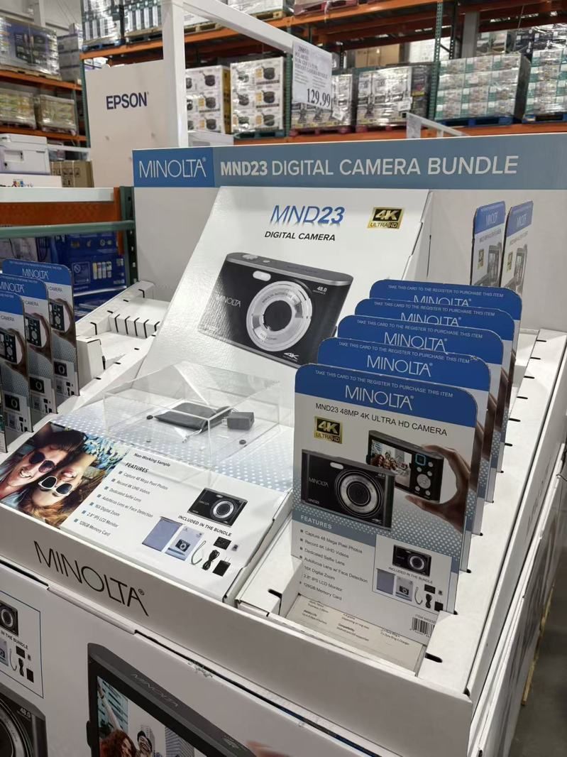 Minolta MND23自拍相機以99.99美元的價格在Costco上架,套裝中包含相機本體、128GB SD卡與USB-C充電線。它能拍攝4800萬圖元的靜態照片與4K超高清影片,配備2.8英寸翻轉螢幕、16倍數碼變焦與自動對焦防抖系統,主打輕便、易上手,適合初入門的影音創作者與旅遊玩家。