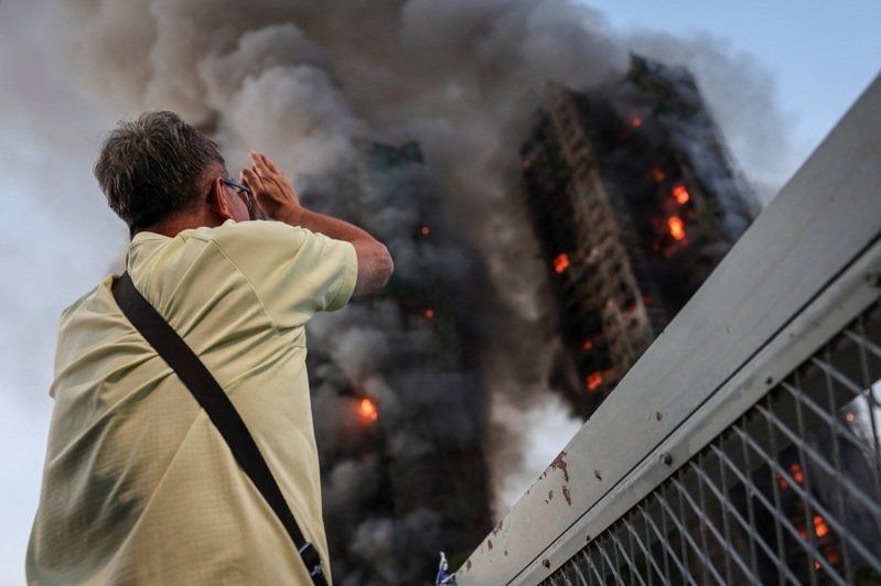 「我老婆還在裡面!」他指著被火舌狂吞的高樓大喊。