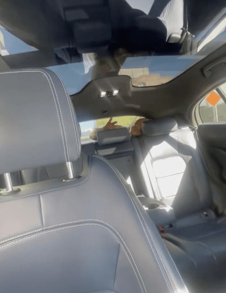 一名女子搭乘Waymo無人計程車時,竟發現一名男子藏在後車廂內。(取自Tiktok帳號luckythurman)