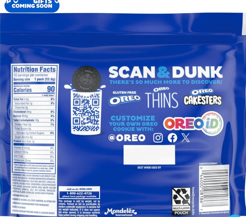 美版零糖奧利奧不含蔗糖,而是採用麥芽糖醇(maltitol)、聚葡萄糖(polydextrose)、三氯蔗糖(sucralose)與安賽蜜鉀(acesulfame potassium)等替代甜味來源。Mondelez 表示,他們從中國、歐洲等市場的經驗中調整了甜度與口感,並針對美國消費者推出更便利的直立式可重封袋包裝,從風味到使用方式都有專為美國市場設計的調整。