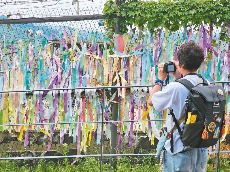 第三地道旁的「DMZ」藝術裝置,吸引許多旅客拍照紀念。記者陳睿中/攝影