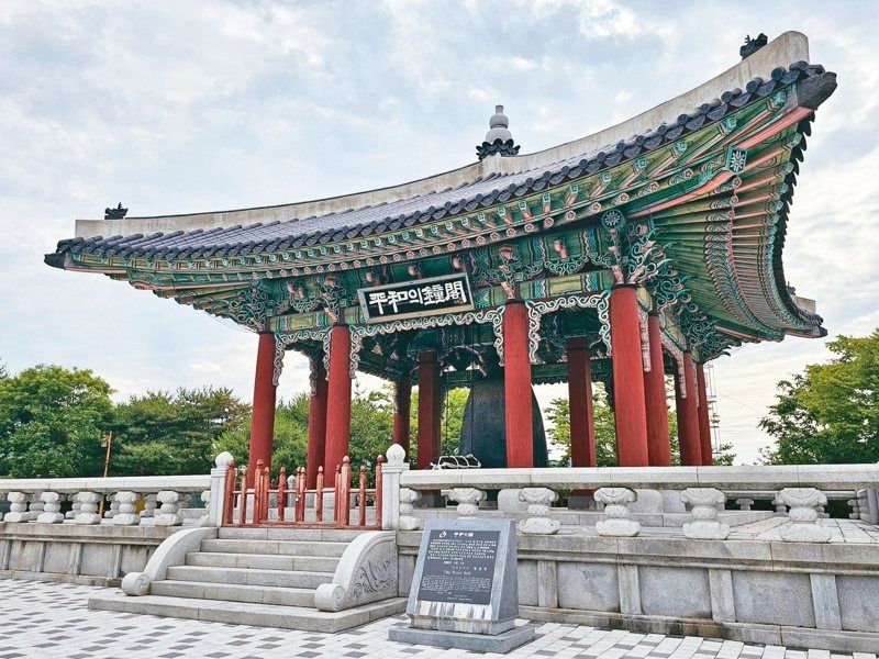 臨津江旁的「和平之鐘」。記者陳睿中/攝影