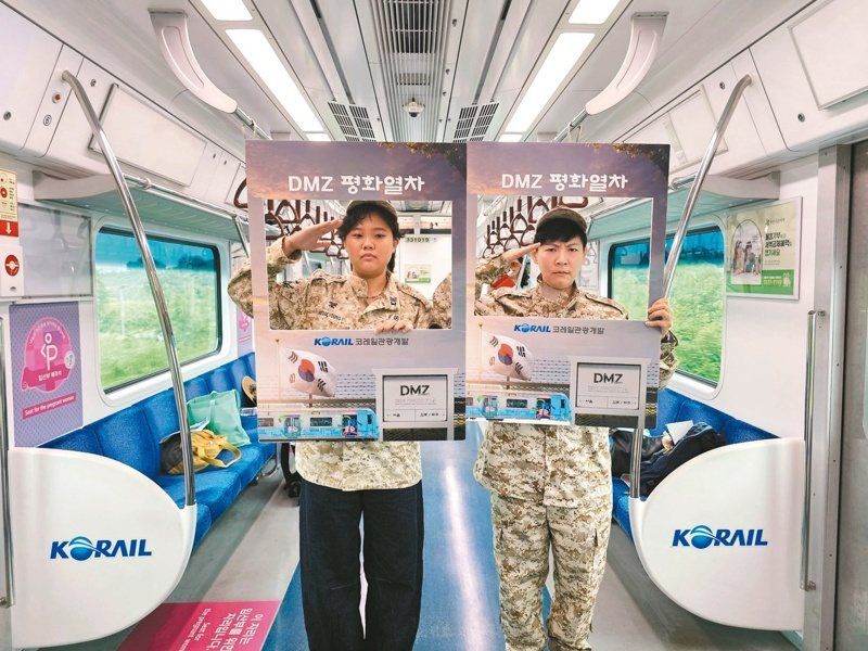 搭乘「DMZ和平列車」的過程中,可以透過工作人員的解說、趣味拍照互動,重新認識韓國戰爭。記者陳睿中/攝影